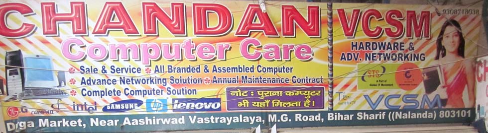 Chandan Computer Care is the exclusive showroom in Bihar Sharif of Laptop, Desktop computer, Printer, computer parts and computer stationary. We have all range of company brands laptop and desktop computer like Acer, Lenovo, HCL, Compaq and more.. Available all services of computer maintenance so visit once.