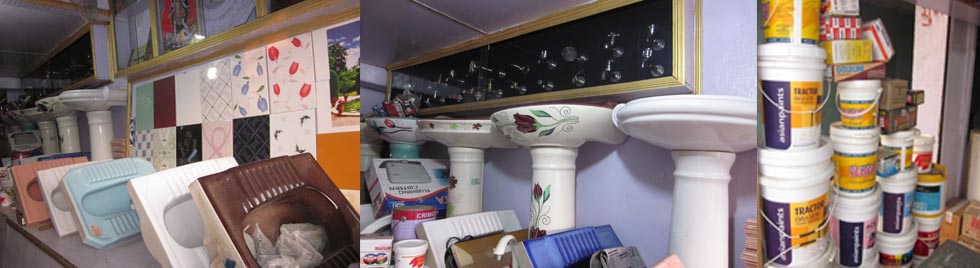 We are offering different types of tiles as Floor tiles, wall tiles, bathroom tiles, Nitco Tiles,Sanitary Hardware and many more categories as per the requirement of the customers.We also deals in All fitting of building Glazed Tiles, Mosaic Tiles Chip,Paints of all company, PVC Pipes, G.I.Pipes & Pipes, Fitting, Sanitary Goods, Door Fittings, same & Hardware etc