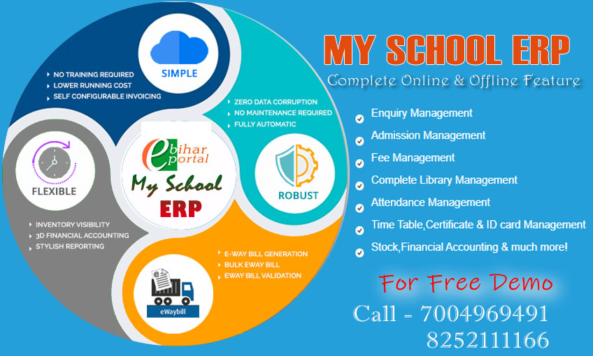 Hybrid School ERP a product of decent design. It's the best school management & Billing software company in Bihar. Software features like fee & billing module. School ERP is one of the best School management software available in India, Bihar. It is easy to implement and online support available all time. School Management Software in Bihar, Student Management, CBSE Based CCE Report Card, CBSE CCE REPORT CARD, Student Information System CCE REPORT GENERATION, CCE SOFTWARE, CCE RESULT SOFTWARE, CCE GRADING SYSTEM, Low Cost, College Management Software, Institution Management Software. A place where you can manage all student activities and operations at one go.